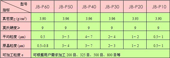 研磨拋光用JB-P系列α-AL2O3產(chǎn)品主要性能指標(biāo):